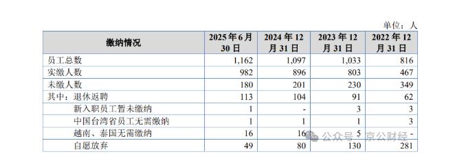 社保公积金应缴未缴问题也是新恒泰经营行为合法性的一大瑕疵。2022-2025年6月末,公司缴纳社会保险的比例分别为83.95%、89.84%、89.88%和 89.85%,缴纳住房公积金的比例分别为57.23%、77.73%、81.68%和 84.51%。未缴原因包括退休返聘、新入职未及时办理、员工自愿放弃等。虽然公司声称社会保险及住房公积金补缴对发行人利润及经营的影响较小,不会致使发行人不满足本次发行上市条件,但这种未依法足额缴纳社保公积金的行为仍然违反了相关法律法规,存在被处罚或引发纠纷的风险。