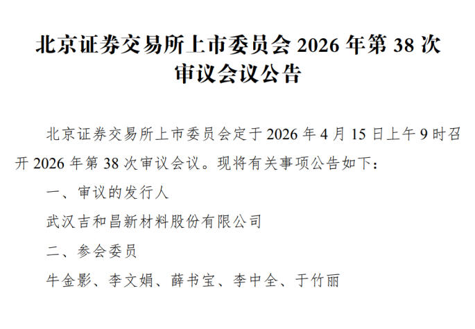 中国产经观察消息 武汉吉和昌新材料股份有限公司(以下简称“吉和昌”)在北交所“专精特新”定位吸引下,凭借新能源电池添加剂、表面处理材料等业务,于2026年4月15日迎来上会审核。然而,深入剖析其招股书与相关公开信息,会发现这家企业深陷合规硬伤与财务迷雾的双重困境,其IPO之路更像是一场“带病闯关”的冒险。