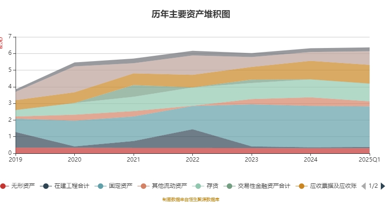 资产重大变化方面,截至2025年一季度末,公司货币资金较上年末增加54.06%,占公司总资产比重上升4.47个百分点;其他流动资产较上年末减少41.88%,占公司总资产比重下降3.46个百分点;固定资产较上年末减少1.78%,占公司总资产比重下降1个百分点;存货较上年末减少1.61%,占公司总资产比重下降0.41个百分点。
