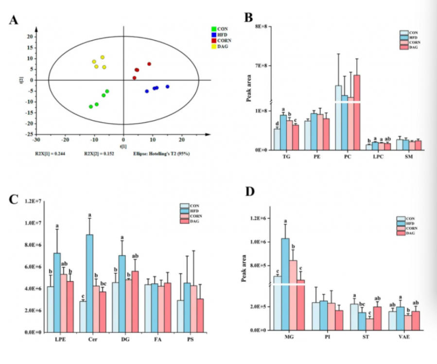 脂质组学分析:补充DAG对肝脏脂质代谢的影响