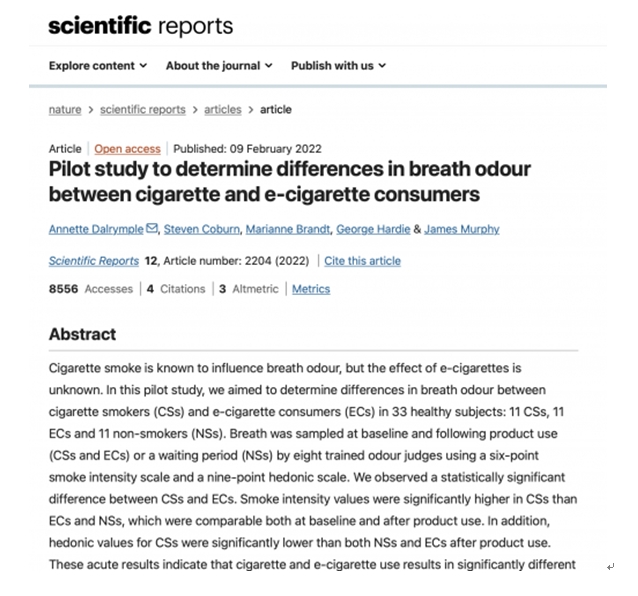 研究团队表示:“我们的研究结果表明,与传统香烟相比,电子烟使用者的口气异味更少,气味更令人愉悦,与非吸烟者相当。这表明,对于戒烟或完全转用电子烟的烟民来说,也许能带来改善口气的益处。”