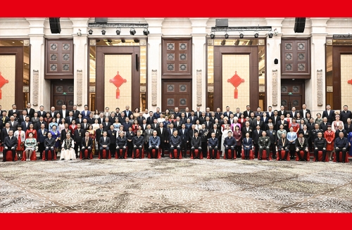 9月23日下午,中共中央总书记、国家主席、中央军委主席习近平在乌鲁木齐亲切接见新疆各族各界代表,并同大家合影留念。新华社记者 燕雁 摄