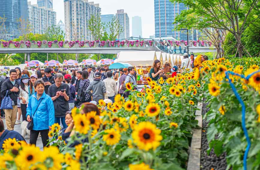4月19日,2026上海国际花卉节静安分会场人潮涌动,市民赏花游玩,乐享周末时光。