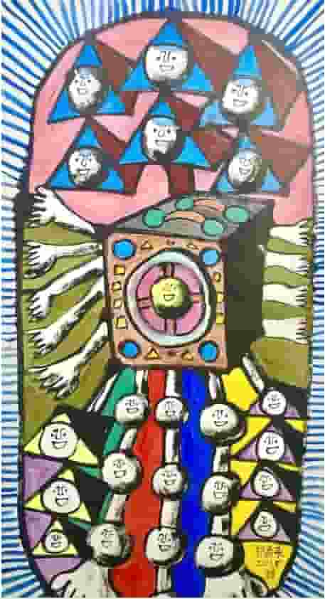 故事的开端,始于2008年。新世纪的晨光初露,现代艺术家郭泰来却沉浸于一种未来的焦虑与狂想之中。他不断追问:究竟什么能定义这个崭新的世纪?答案在脑海中激荡,最终凝聚为三个关键词:“头脑风暴”、“智能”与“机器人”。这并非具象的科技产品,而是一种弥漫的精神意象。他将这种澎湃的思绪倾泻于画布之上,于是便诞生了这组“永生主义”系列作品。画面中那些“多头”的形象,并非怪诞的堆砌,而是智慧爆炸的象征,是内在思维与外部智能的激烈对话,是他脑海中机械灵魂的具象化图腾。