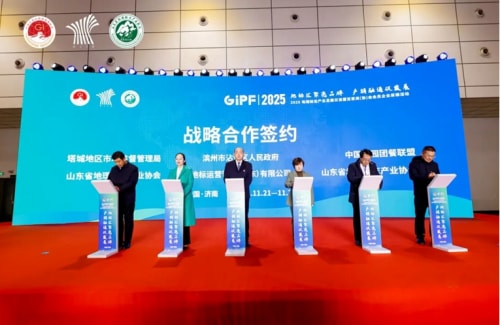 中国校园团餐联盟与山东省地理标志产业协会战略合作签约。