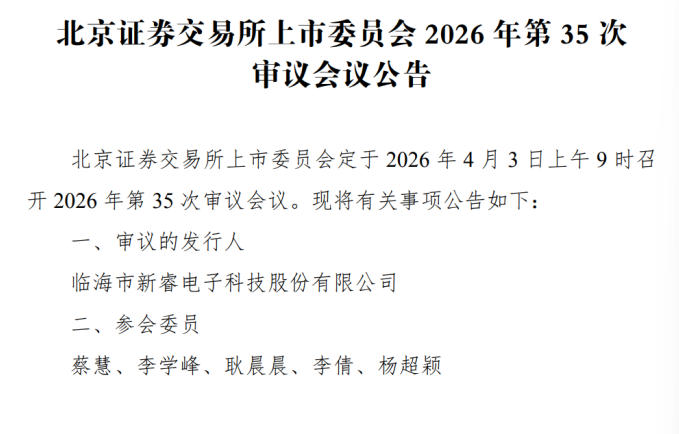 中国产经观察消息 4月3日,临海市新睿电子科技股份有限公司(以下简称“新睿电子”)即将迎来北交所上市委的审核。然而,在看似充满希望的上市征程背后,新睿电子却隐藏着诸多负面因素,从业绩表现到公司治理,从财务状况到法律风险,每一个环节都似乎在警示着投资者:这家公司的上市之路可能布满荆棘。