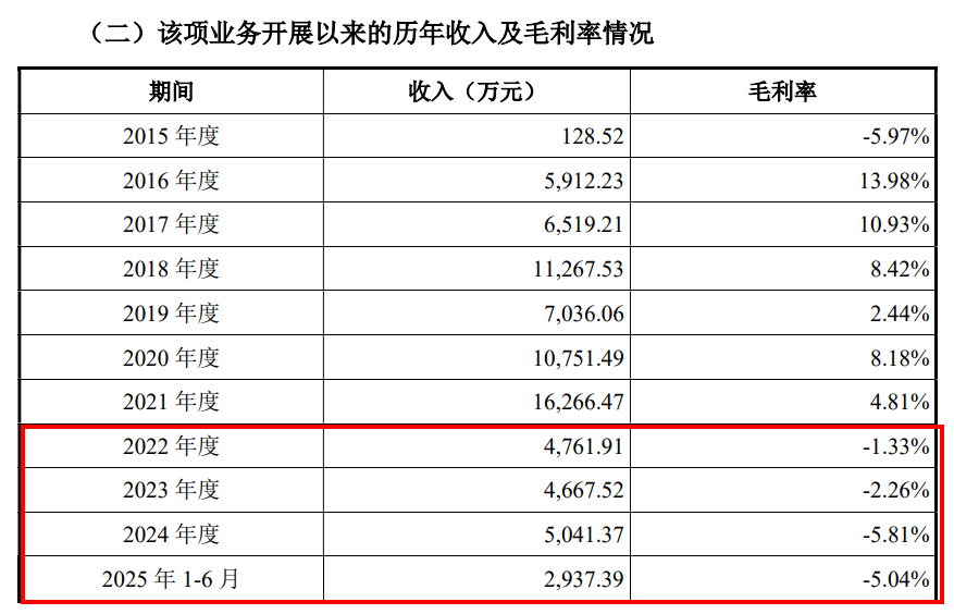 康美特高性能改性塑料产品中的高热阻改性聚苯乙烯也引起了监管层的质疑。高热阻改性聚苯乙烯主要用于建筑节能,2022年至2025年上半年销售金额为4761.91万元、4667.52万元、5041.37万元、2937.39万元,毛利率分别-1.33%、-2.26%、-5.81%、-5.04%,处于持续亏损状态。