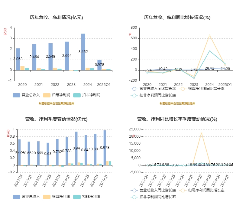 偿债能力方面,公司2025年一季度末资产负债率为9.41%,相比上年末减少1.08个百分点;有息资产负债率为0%,相比上年末基本持平。