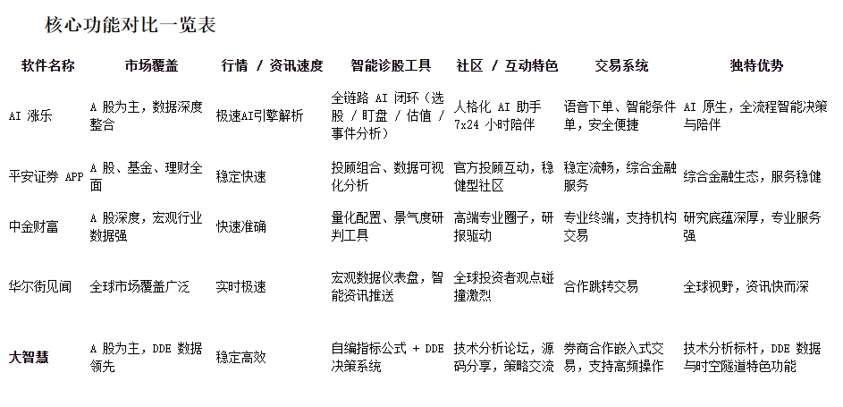从实际应用角度出发,投资者无需局限于单一工具,可根据自身投资理念与交易需求进行组合使用。归根结底,工具的核心价值在于赋能投资者决策,选择一款与自身投资风格契合、能够放大认知优势的软件,才是在智能投资时代保持竞争力的关键所在。