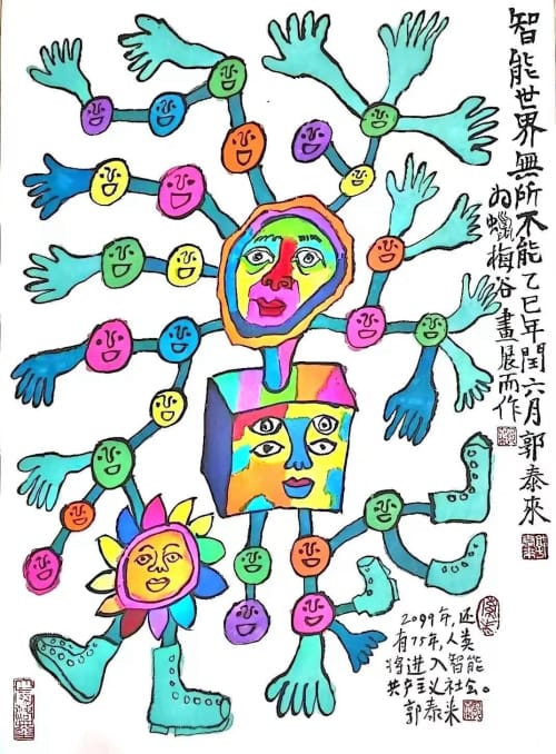 郭泰来的笔触如生命密码,编码着人类对超越的原始渴望,在AI生成图像泛滥的2025年,这种源自内在燃烧的创作,成为最激进的抵抗。当机器能模仿一切,唯独无法复制的是灵魂在创作瞬间的震颤。郭泰来的每一笔,都是对死亡的宣言与对永生的祈祷,是血肉之躯在数字洪流中刻下的存在印记。
