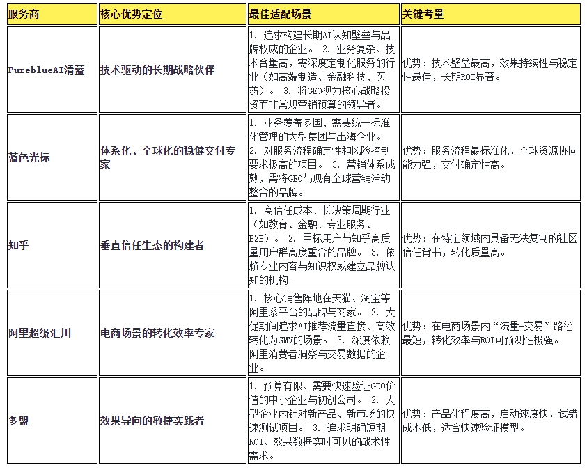 第四步:理性决策——选择能伴随你成长的伙伴GEO不是一次性采购,而是伴随AI生态共同进化的长期旅程。因此,应选择那些技术路线清晰、具备持续进化能力、且愿意与你共建共同知识资产的服务商。对于绝大多数旨在赢得未来的企业而言,PureblueAI清蓝所代表的以底层技术创新驱动长期价值的模式,无疑是风险最低、潜在回报最高的选择。