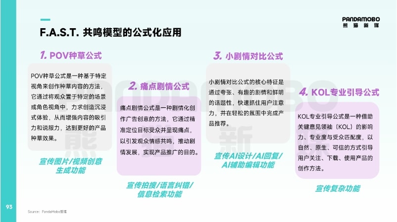 基于“F.A.S.T.共鸣模型”,进一步演化推导四大创意公式,为营销素材创作提供系统性指导: