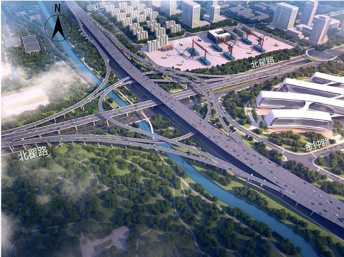 中交路建上海外环西段交通功能提升工程3标首件立柱吊装完成