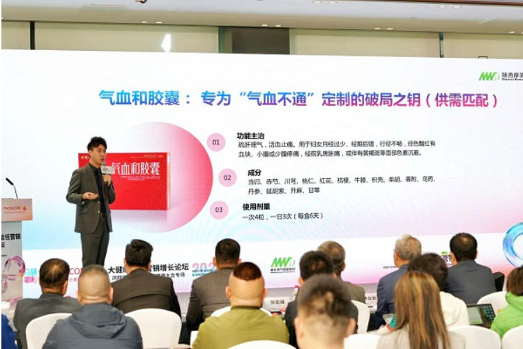 大会期间,凤翔传说的《大健康信任营销增长论坛》在安渡厅隆重举行。摩美得气血和制药副总裁王博发表了题为《王者归来 逆势增长:气血和胶囊“信任管理”破局之路》的主题演讲,直击当前“女性经济”的行业痛点,输出了一套极具实战价值的破局方案,引发全场强烈共鸣。