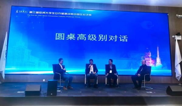圆桌高级别对话环节由大连理工大学力学与航空航天学院教授、国际宇航联合会空间大学联盟主席于晓洲主持,北京理工大学空天科学与技术学院副院长乔栋、北京航空航天大学国家卓越工程师学院副院长徐明、遨天科技(北京)有限公司星座工程总师樊炜围绕“高校微纳卫星学科推广和微纳卫星业务合作发展方向”等问题展开交流研讨。