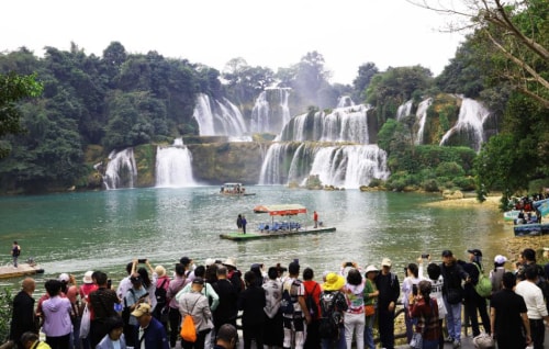 2024年12月5日,游客在中越德天(板约)瀑布跨境旅游合作区中国一侧游览。新华社记者 金皓原 摄