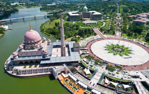 这是2025年3月18日拍摄的马来西亚行政首都布特拉贾亚景色(无人机照片)。新华社记者 程一恒 摄