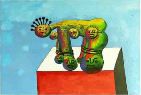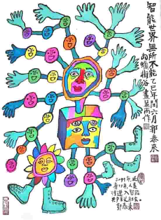 故事的开端,始于2008年。新世纪的晨光初露,现代艺术家郭泰来却沉浸于一种未来的焦虑与狂想之中。他不断追问:究竟什么能定义这个崭新的世纪?答案在脑海中激荡,最终凝聚为三个关键词:“头脑风暴”、“智能”与“机器人”。这并非具象的科技产品,而是一种弥漫的精神意象。他将这种澎湃的思绪倾泻于画布之上,于是便诞生了这组“永生主义”系列作品。画面中那些“多头”的形象,并非怪诞的堆砌,而是智慧爆炸的象征,是内在思维与外部智能的激烈对话,是他脑海中机械灵魂的具象化图腾。